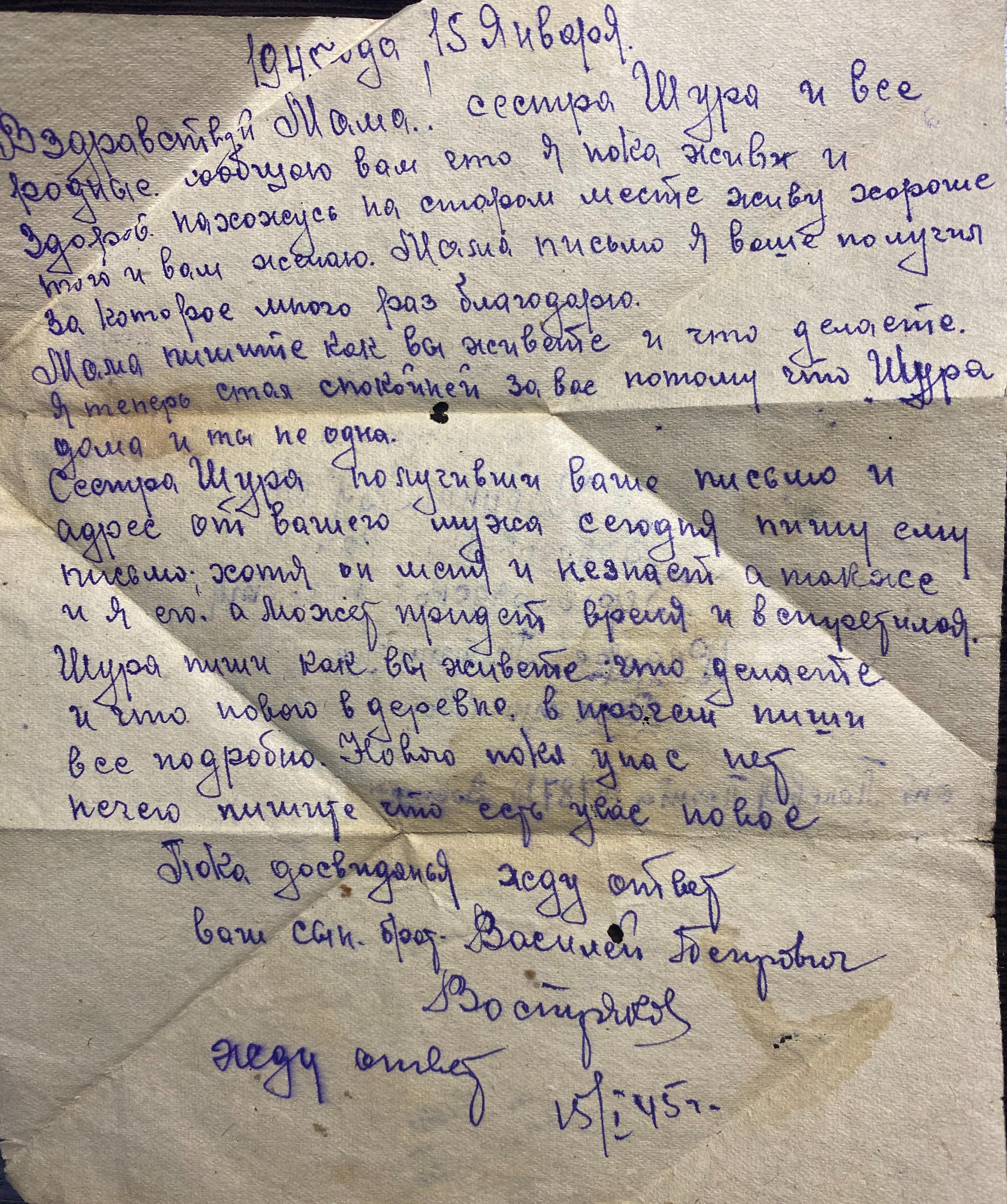 Бочаров Владимир Николаевич 1925 года рождения рос в маленькой и тихой деревушке Григорово Тульской области. Едва достигнув 18-летнего, он был призван в армию. Погиб смерью храбрых 27 августа 1944 г., защищая Польшу.