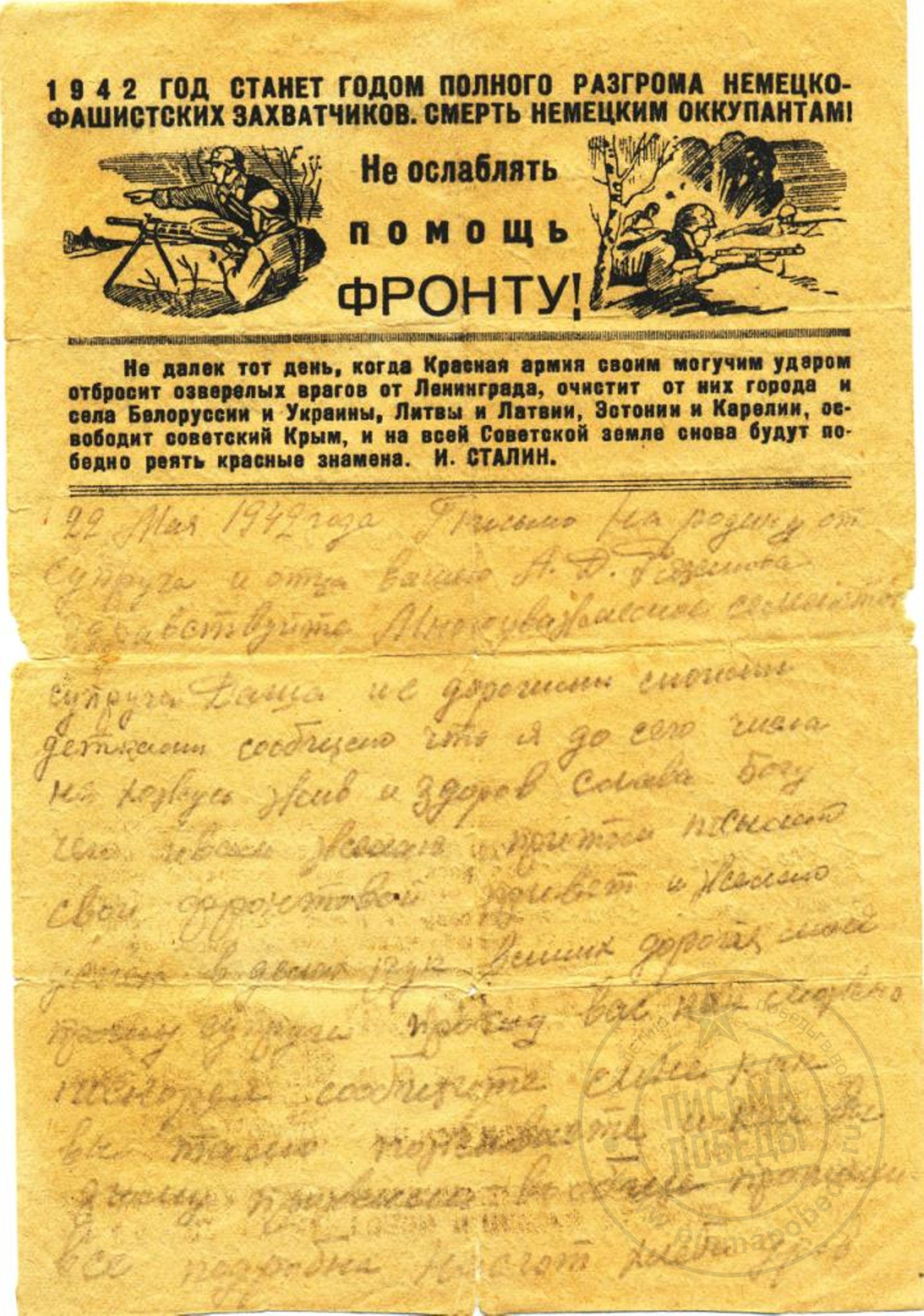 Дата написания письма: 29.06.1942