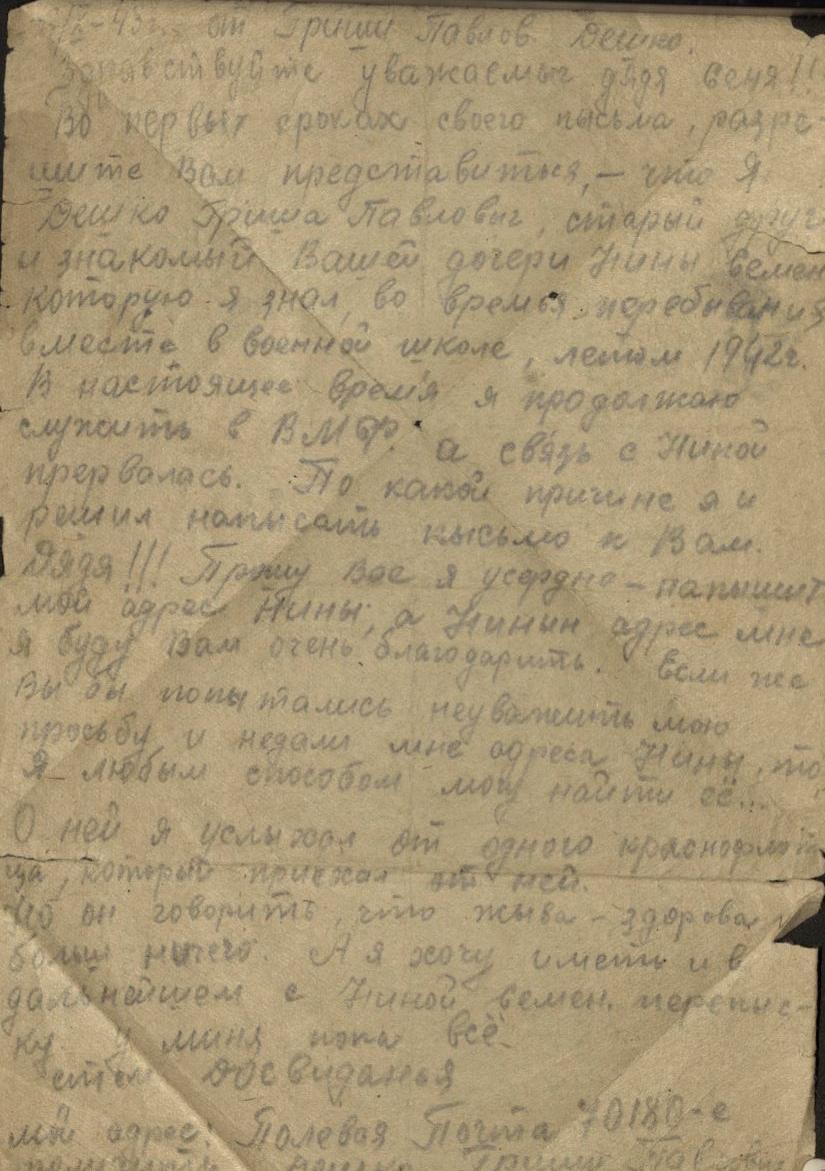Дата написания письма: 10.01.1945