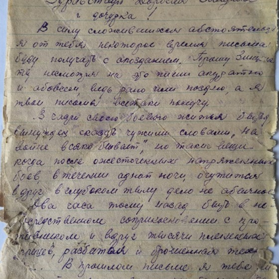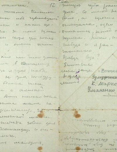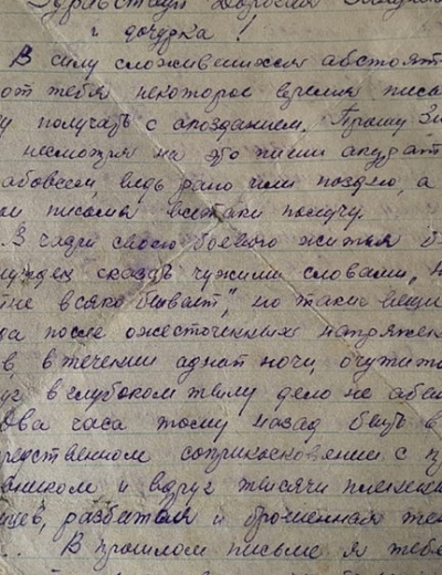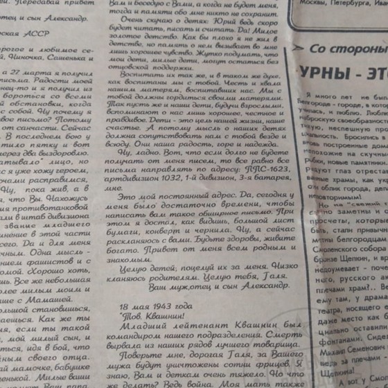 инженера саперных войск, замполита Лаптева Николая Ивановича к моей прабабушке Лаптевой Зинаиде Кузьминичне. Николай Иванович прошёл всю войну, участвовал в обороне Сталинграда, форсировал Днепр. 24 апреля 1945 года мой прадед попал под немецкий авианалёт в Восточной Германии и был смертельно ранен в голову осколком бомбы. До капитуляции Третьего Рейха оставалось две недели.