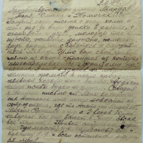 Дата написания письма: 26.06.1944