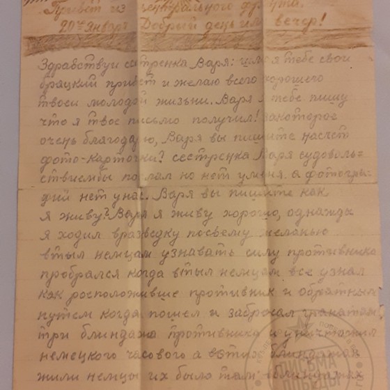 Дата написания письма: 29.01.1944