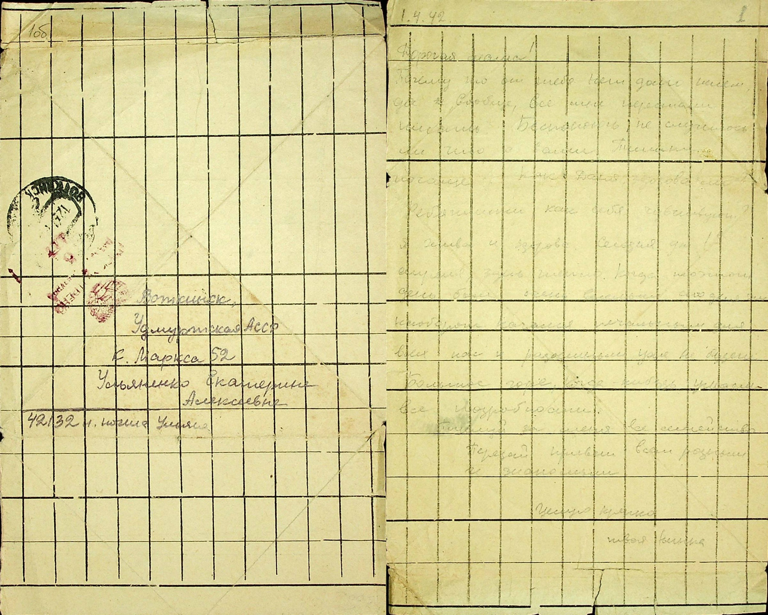Дата написания письма: 01.04.1942