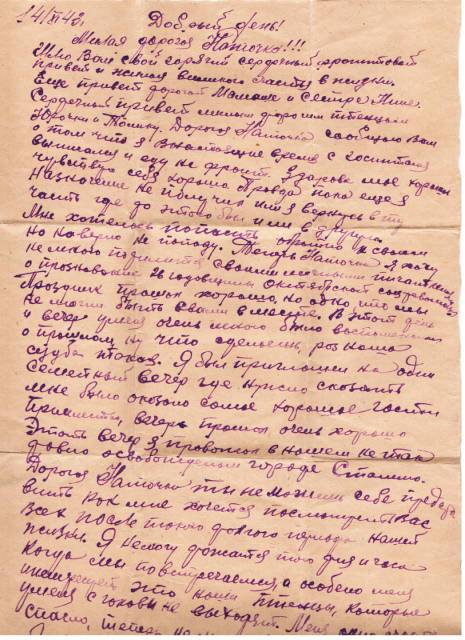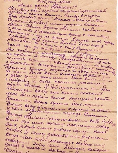 Письмо Адели Михайловны Гарпф из Ленинграда сыну Михаилу Иосифовичу Гарпф. 7 октября 1941 г. / Гарпф Адель Михайловна (1887—1970-е). - 1941. - Из спроводительного документа: брат Михаил (1916 г.р.) в начале войны был на гастролях с оркестром Утесова в Москве и избежал блокадных мук. Вот ему-то и адресованы письма, мама писала ему почти ежедневно (июль 1941—июнь 1942). Сохранилось примерно 150 писем. Ветхий документ. Разрывы. Сгибы. Замятия. Пожелтения бумаги.
