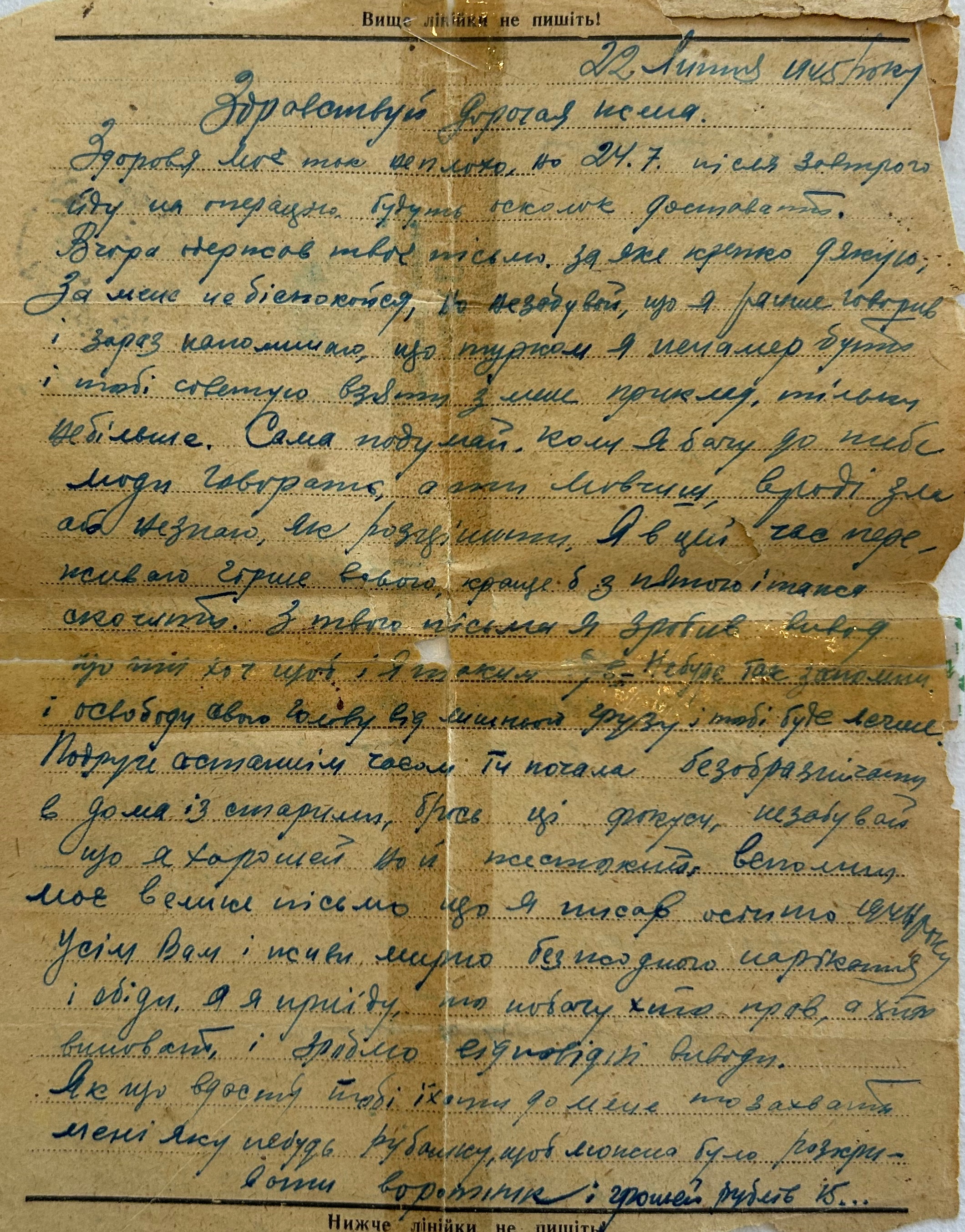 Дата написания письма: 22.07.1945