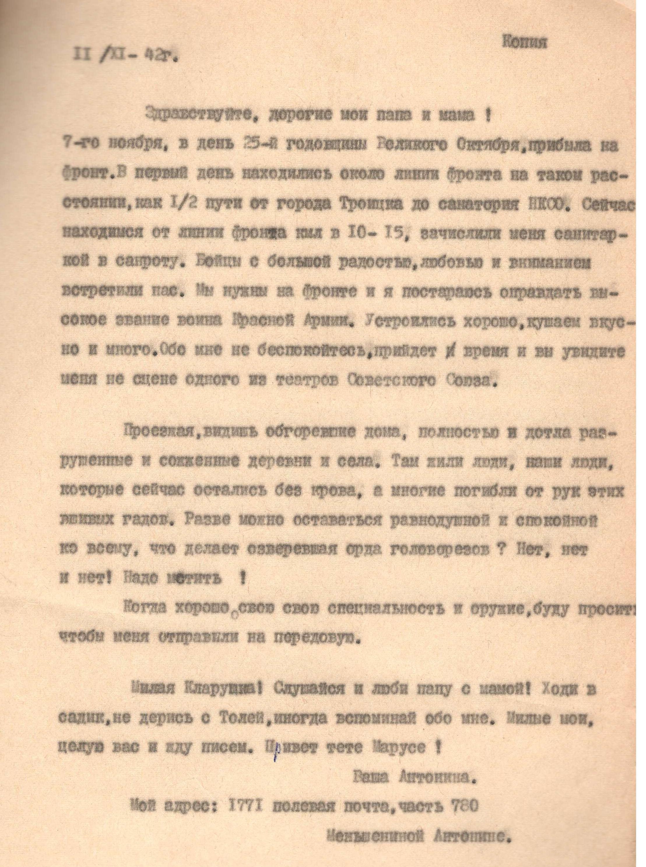 Автор письма: Меньшенина Антонина Филипповна