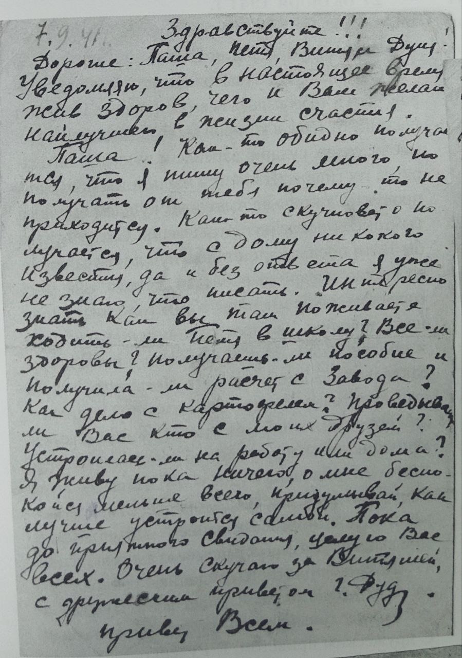 Дата написания письма: 7.09.1941
