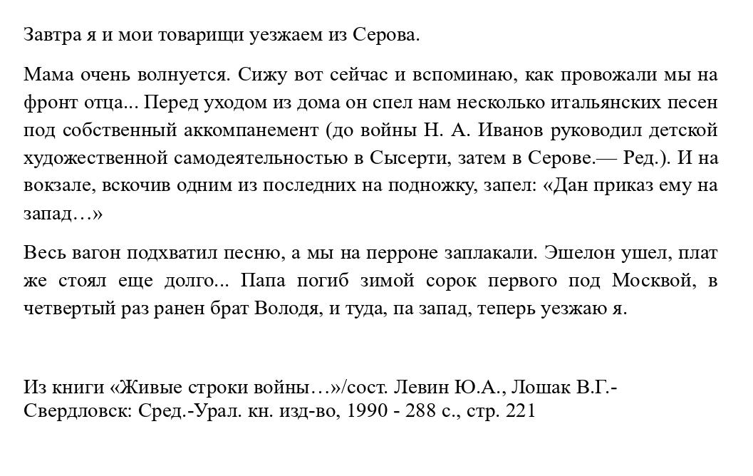 Автор письма: Иванова-Колодкина Вера Н.