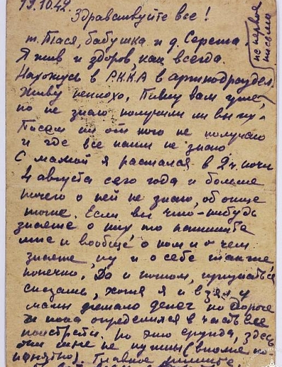 Дата написания письма: 1.01.1945