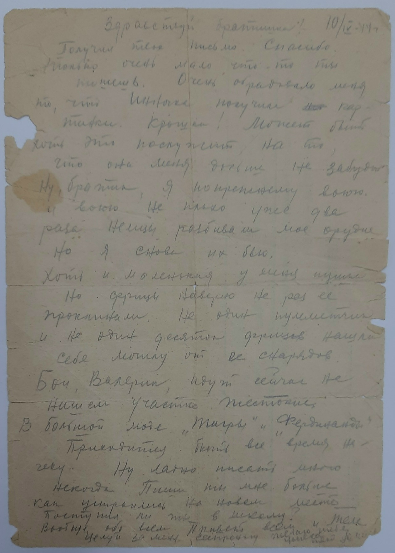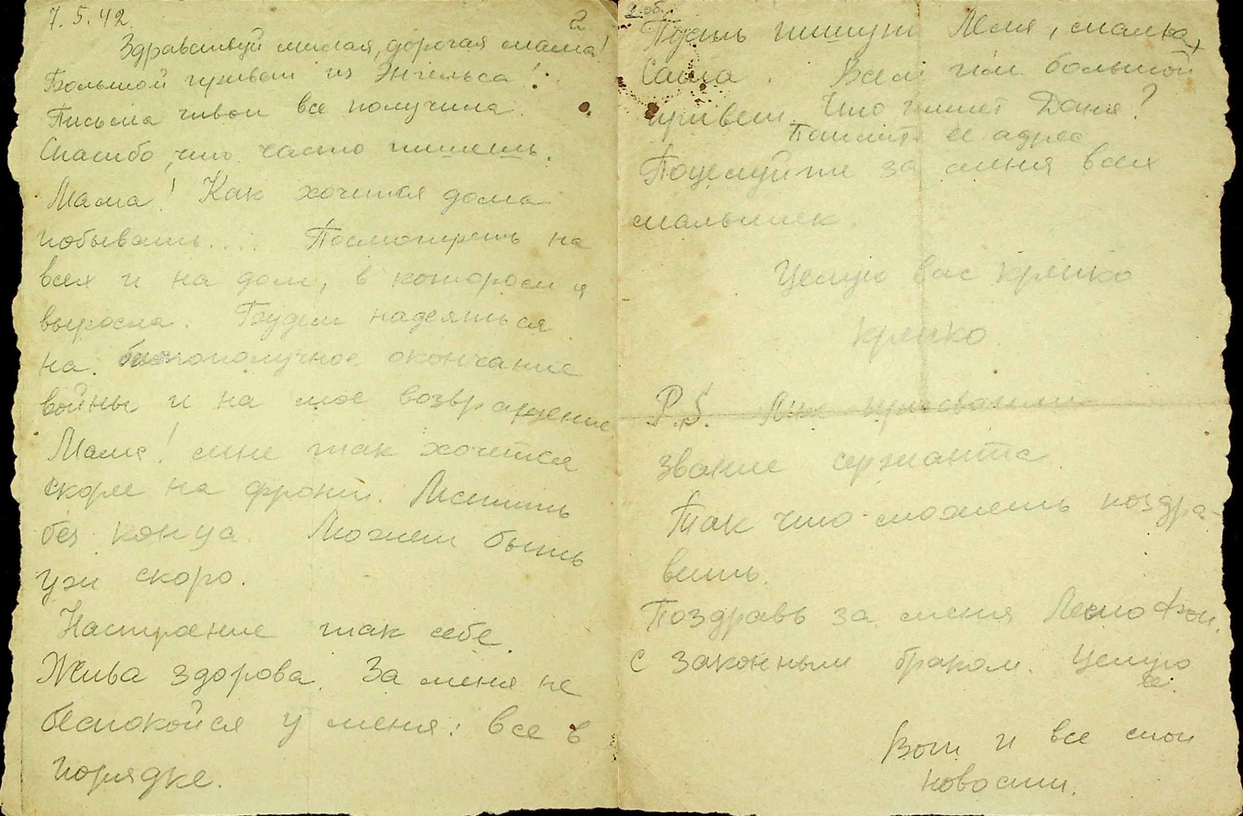 1 ноября 1942 года. Снова приближается холодная, суровая зима. Обмундирование хоть и выдали, но Георгий Степанович в своем письме просит маму выслать ему «если можно, перчатки, носки и хоть какой-нибудь шарфик, а то поддувает под воротник».
