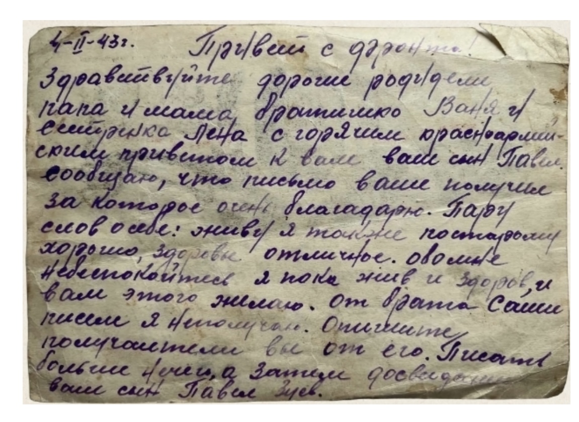 Дата написания письма: 04.02.1943