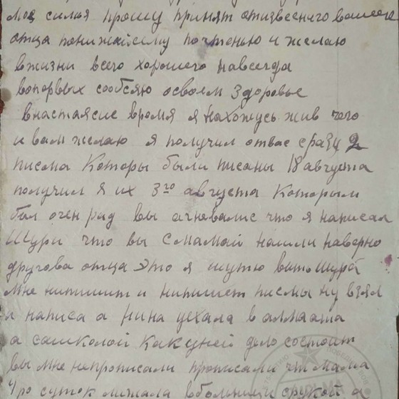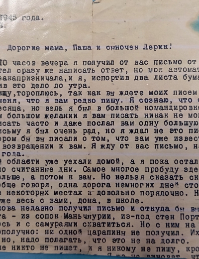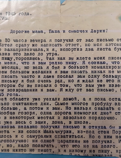 Дата написания письма: 1945 г.