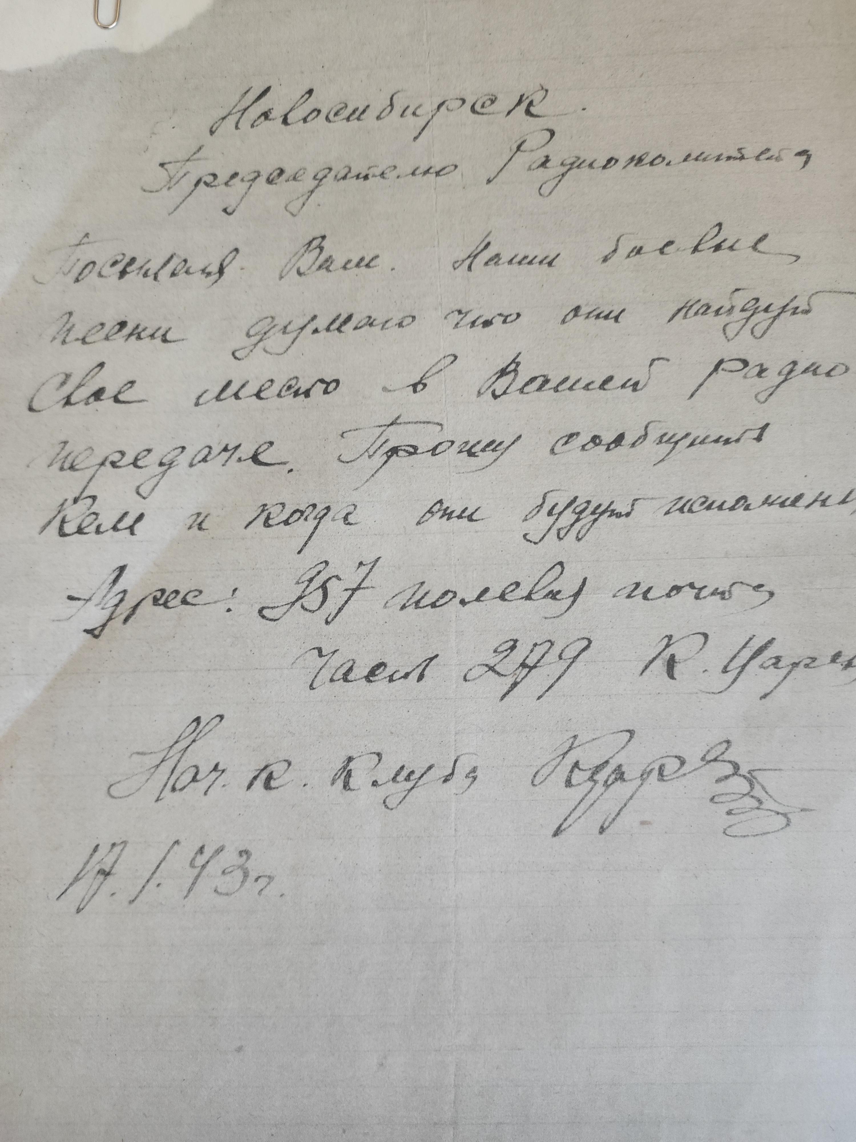 Дата написания письма: неизвестно