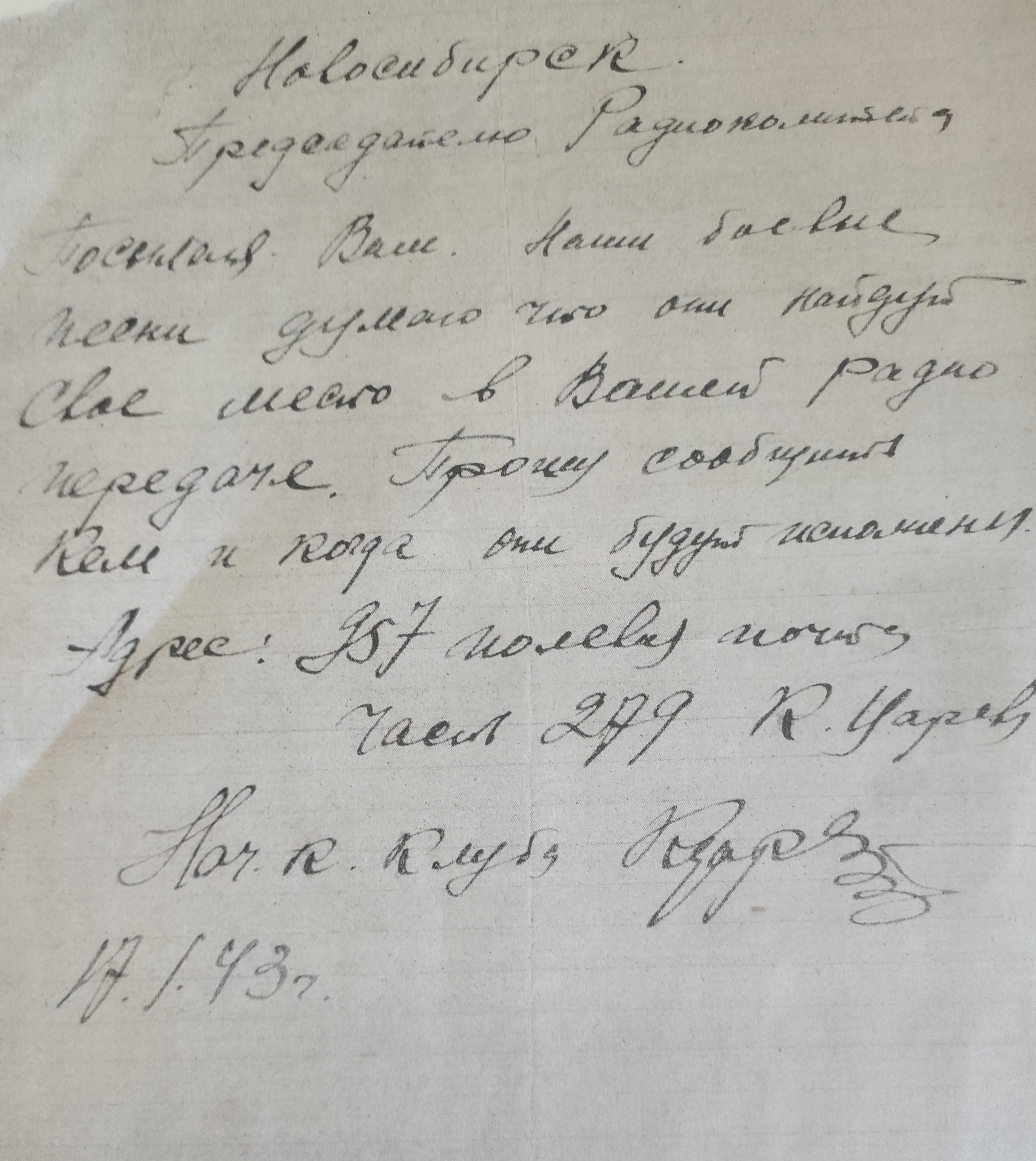 Корреспондент радиокомитета города Новосибирска