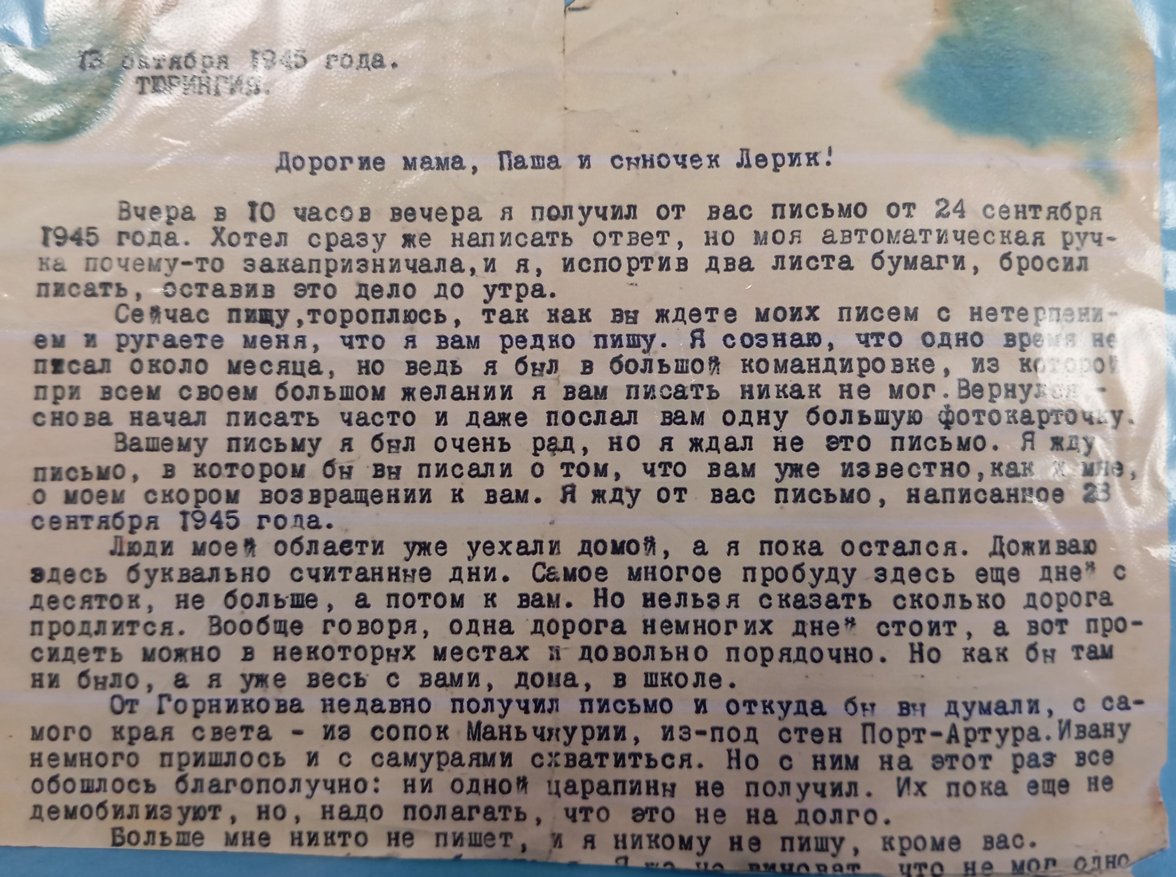 Дата написания письма: 13.10.1945