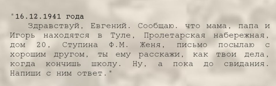 Дата написания письма: 16 декабря 1941 года