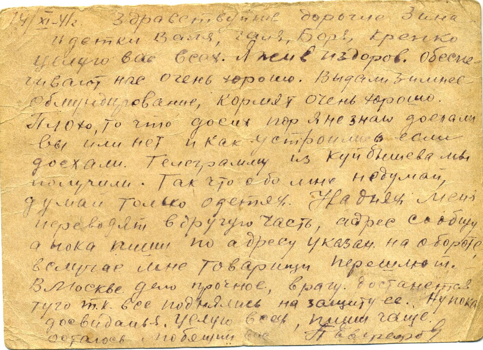 Дата написания письма: 14.12.1941