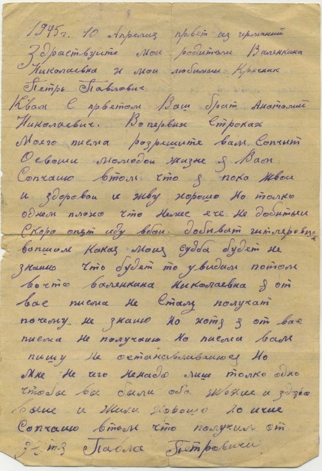 Дата написания письма: 10.04.1945