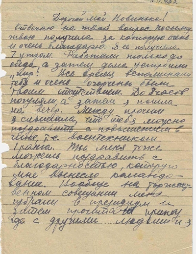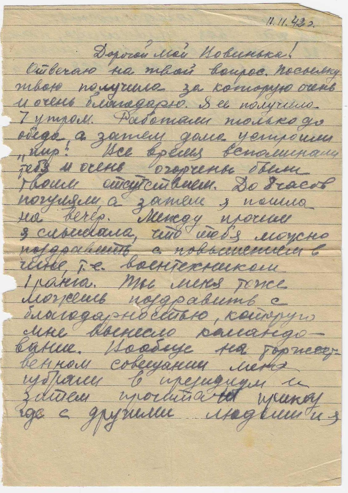 В письмах своей матери он писал: «Дорогая моя мама! Сегодня нас отправляют на фронт. Но не знаю пока, куда едем на поезде. Нам дали зимнюю форму, шинели, валенки, теплое белье и шерстяные носки, портянки и новые ботинки. Когда приеду на место, напишу».