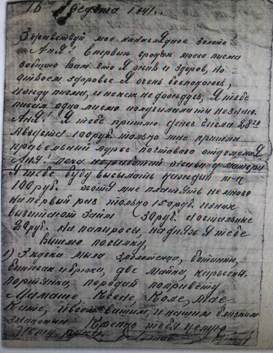 Дата написания письма: 16.08.1941