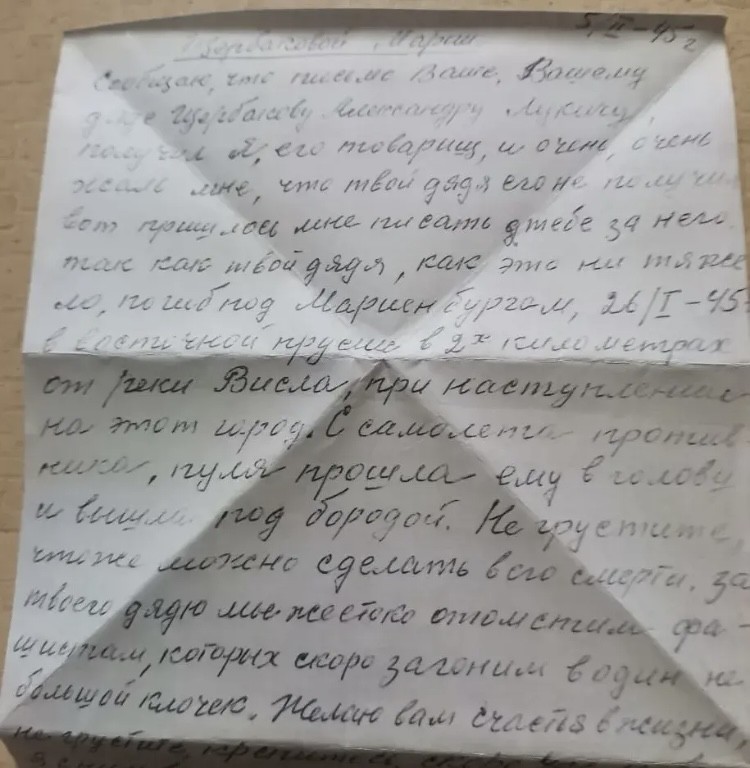 Дата написания письма: май 1945