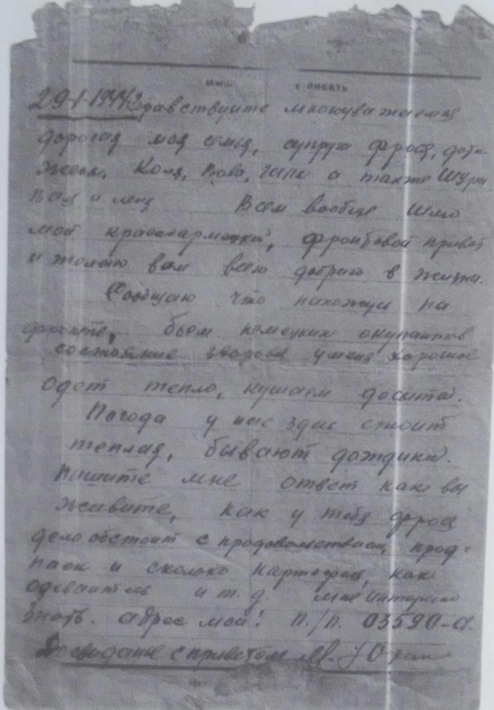 Дата написания письма: 29 января 1944 года