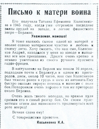 Автор письма: Н.Н Колганов