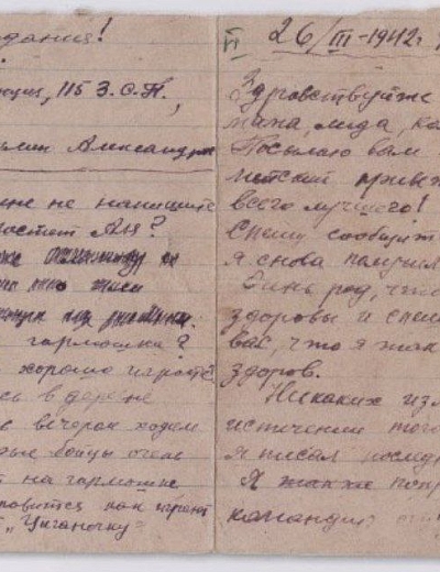 Дата написания письма: 26.03.1942