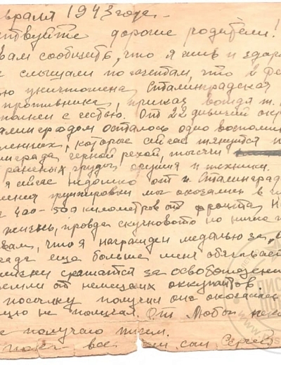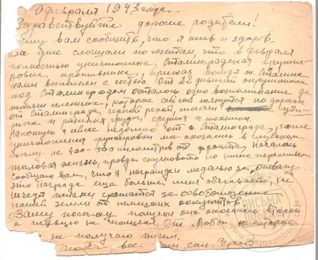 Письма читают - Сальникова Ксения (за внучку), Сорокин Сергей (за А.Г.Красилова).