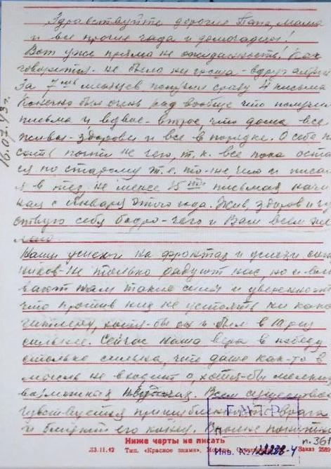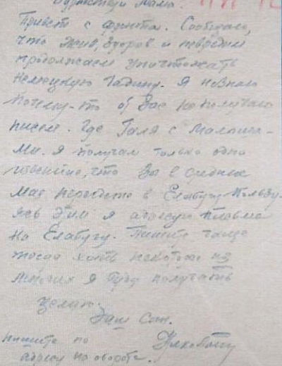 Был младшим сержантом. При выполнении боевого задания он и несколько его товарищей получили ранения, после чего были госпитализированы в госпиталь. Там учащиеся школы №20 подготовили для них выступление и подарки. Красноармейцам было очень приятно, что к ним проявили такую заботу. В знак благодарности они написали им письмо, и после этого до окончания войны держали связь с ними.