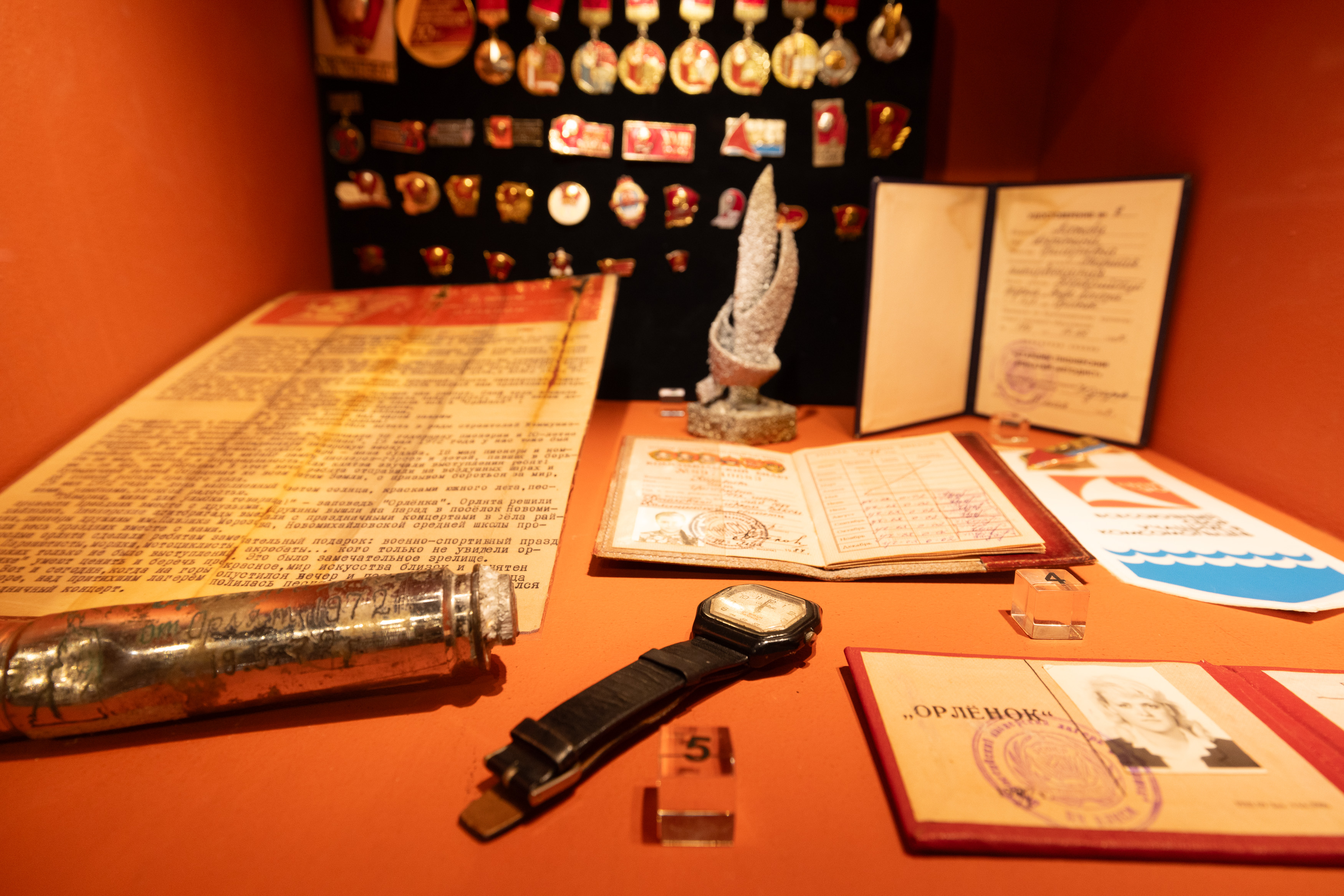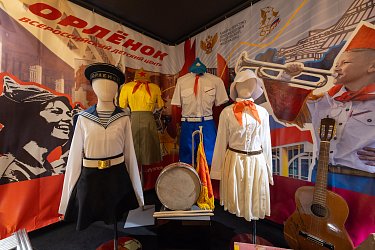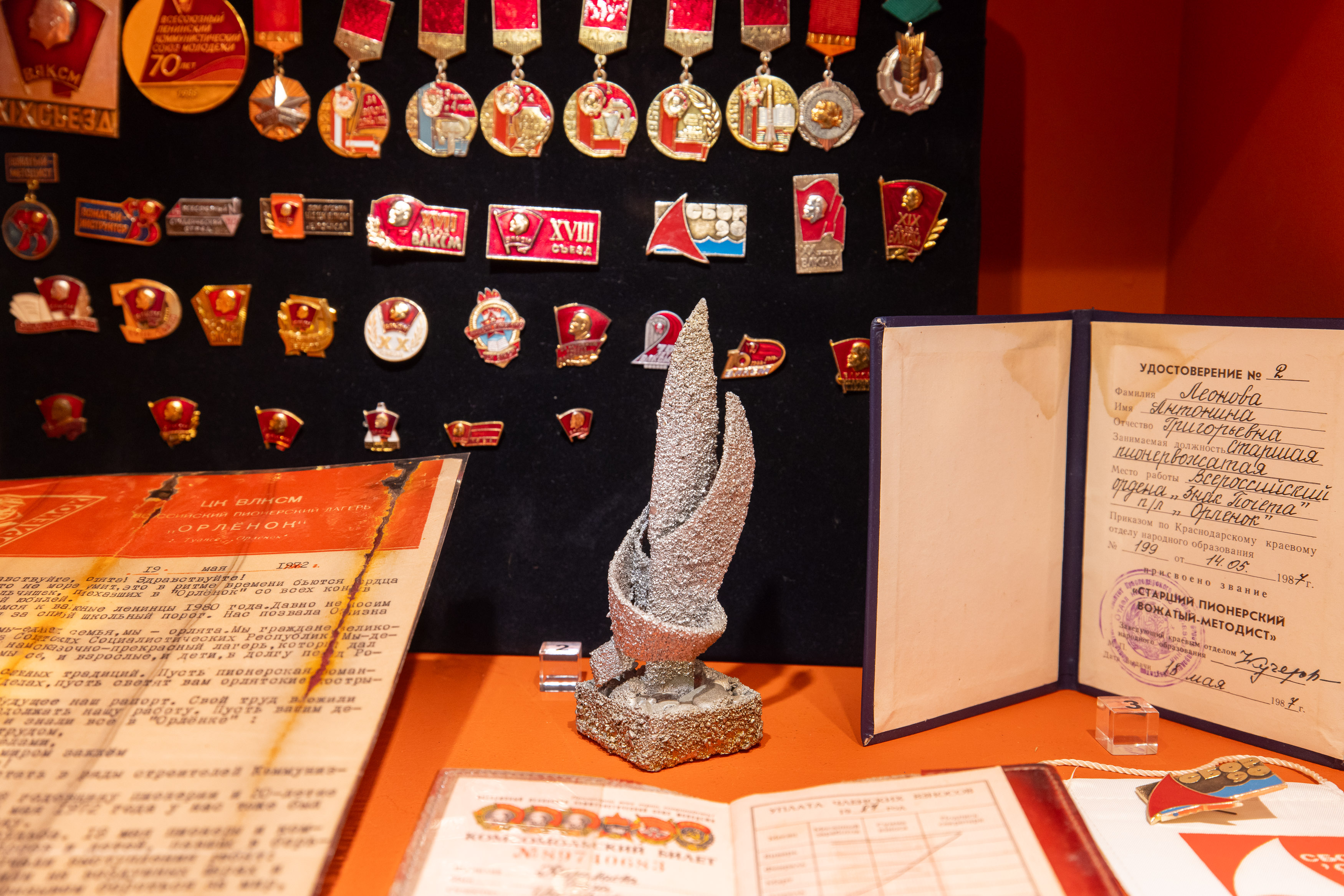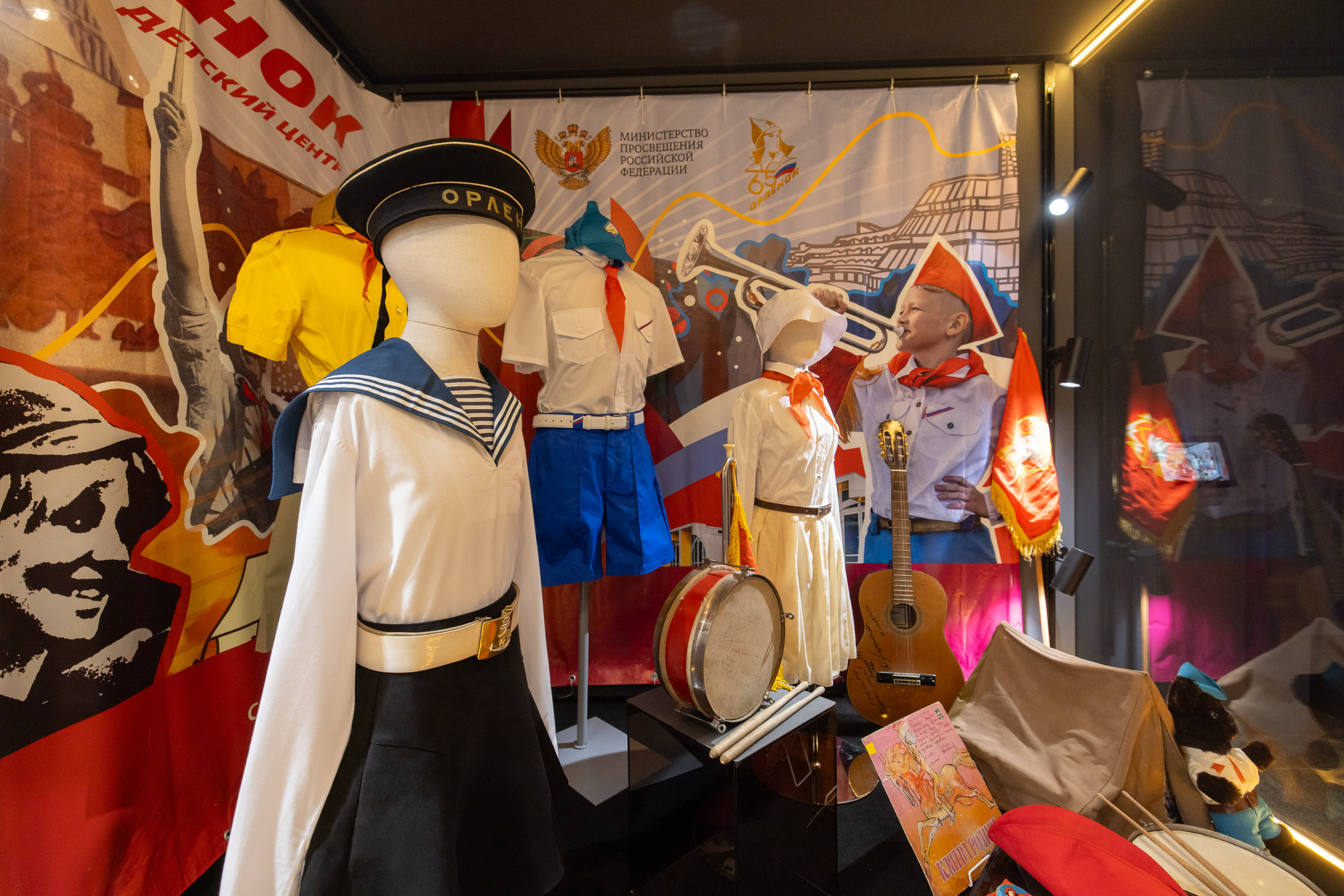 Некоторые экспонаты можно потрогать руками: в коллекции значков детских общественных организаций России и других стран найти значки своего города или региона, на барабане или на коленках сыграть старые пионерские марши, а на старом проигрывателе послушать первые орлятские песни, записанные на виниловые пластинки. Можно сделать селфи на фоне гипсового горниста, фигуры которых когда-то украшали школьные и лагерные дворы и линейки.
