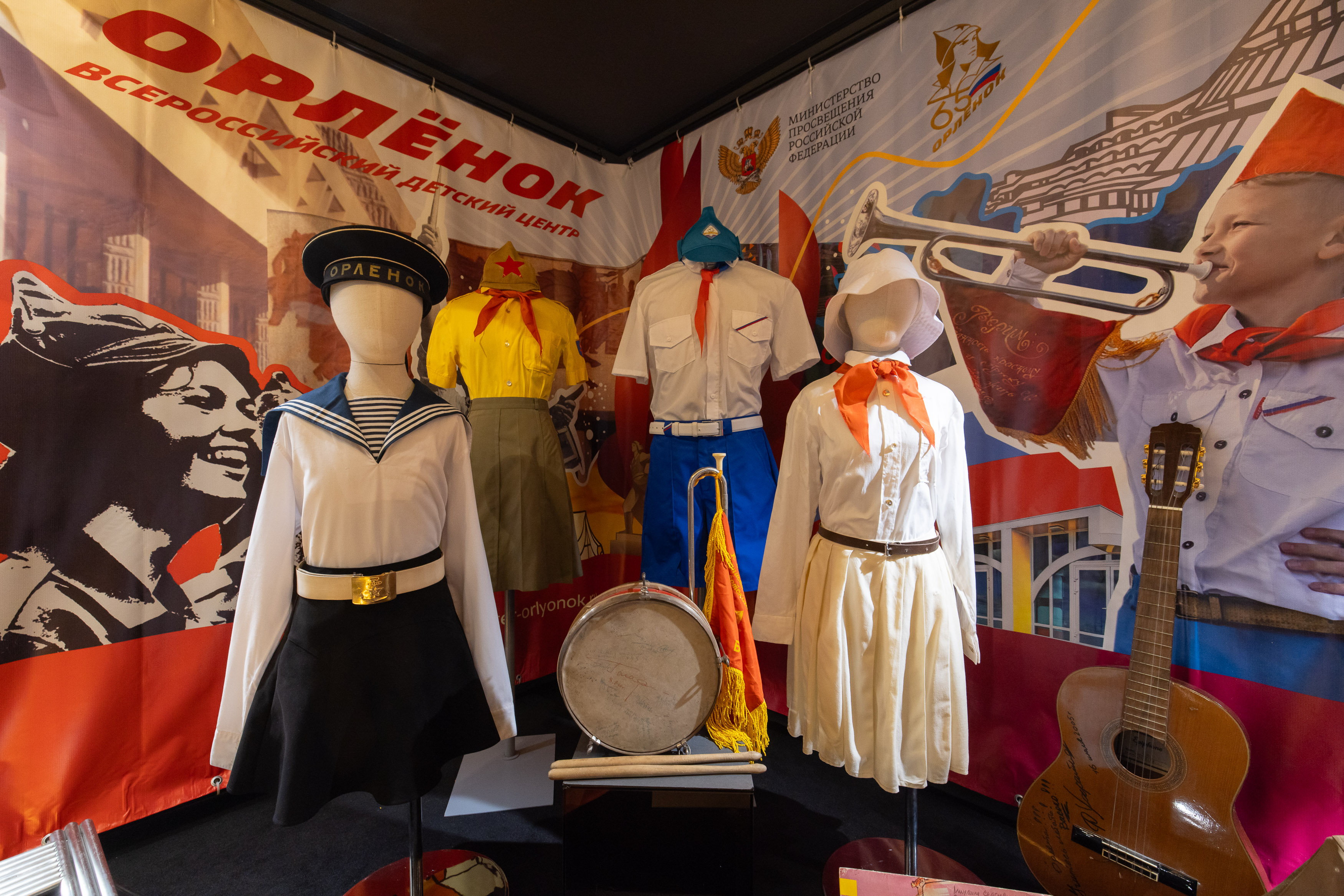 В экспозиции будут представлены реликвии из музея истории ВДЦ «Орлёнок» и Московского дворца пионеров на Воробьевых горах. Выставка познакомит с уникальными экспонатами, которые расскажут о славном пути одного из крупнейших детских центров России. В витринах зала «Школьный Музей Победы» посетители смогут увидеть символы пионерского «Орлёнка»: это и алый пионерский галстук, развевающие концы которого говорили, что его обладатели будут бороться с любой несправедливостью за Родину, Добро и Справедливость, горн и барабан, задающие бодрый ритм пионерской жизни. Заинтересуют посетителей выставки интересные по стилю и содержанию документы вожатых – их дневники, рабочие тетради дежурных по лагерю, тетради наблюдений, методические рекомендации.Для справки: