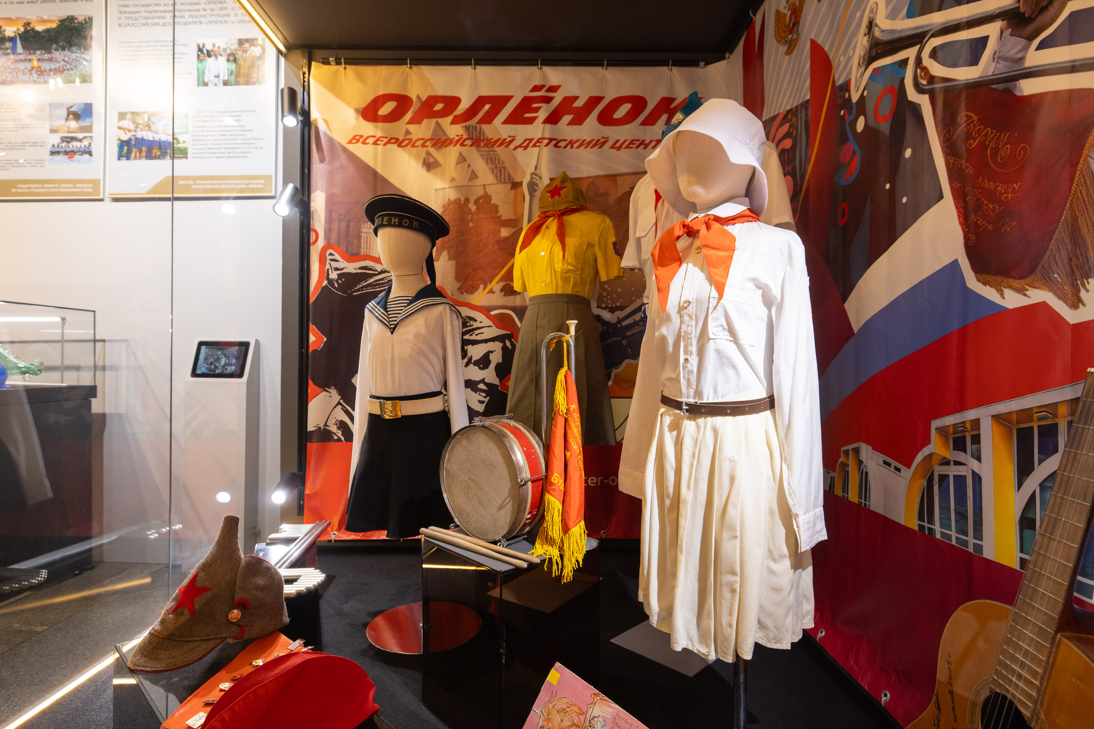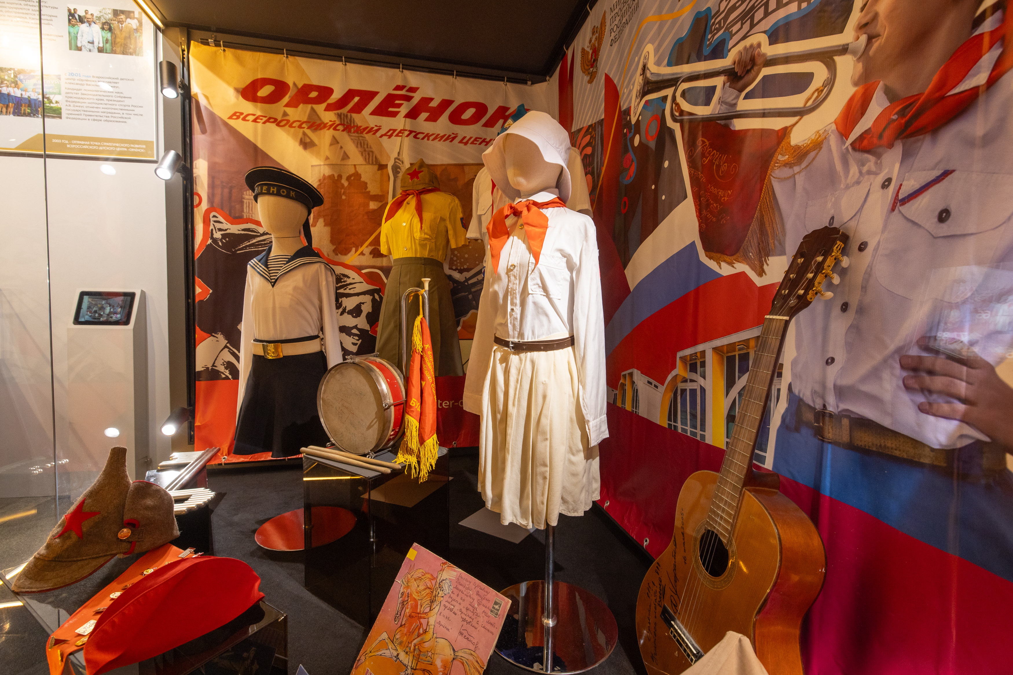 В музее истории «Орлёнка» девять разделов, рассказывающих об исторических этапах развития детского центра.