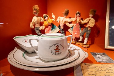 5. Предметы столового сервиза с изображением первого значка Орлёнка, который накрывался на стол в дни самых торжественных событий.