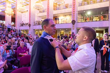 Здесь же вы услышите истории названия центра и создания орлятского значка с силуэтом героя — мальчишки в краснозвёздной будёновке.
